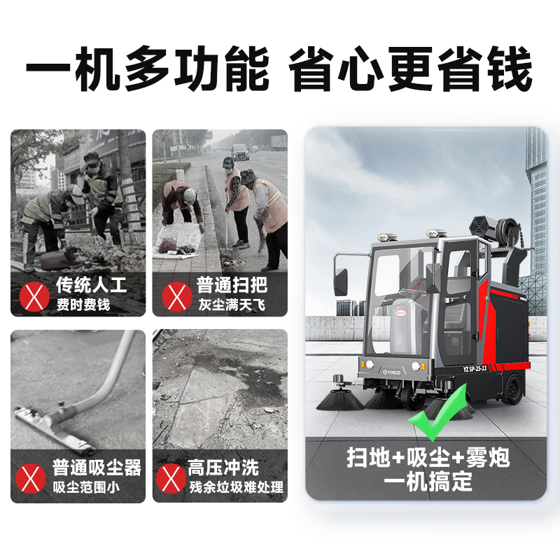 自營揚子掃地機YZ-SP25-13霧炮款 全封閉式駕駛 物業(yè)戶外環(huán)衛(wèi)室外大型道路清掃車