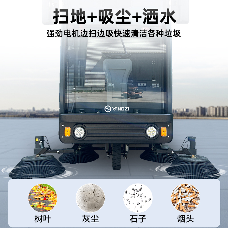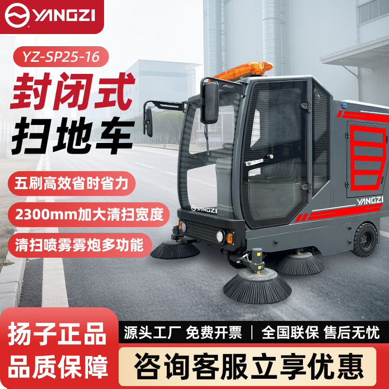 自營揚(yáng)子掃地機(jī)YZ-SP25-16 全封閉式駕駛 工廠車間園區(qū)道路樹葉掃路車